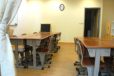 律於美孩子光腳在地板跑跳,直接在木地板上午睡,在成長課桌椅上學習。我們盡可能減少塑膠產品的使用,以原木家具營造暖色調的空間,徹底放鬆心情。我們保留較大的空間給孩子活動、閱讀,並以大面的落地窗讓孩子的身體感受四季的節奏。