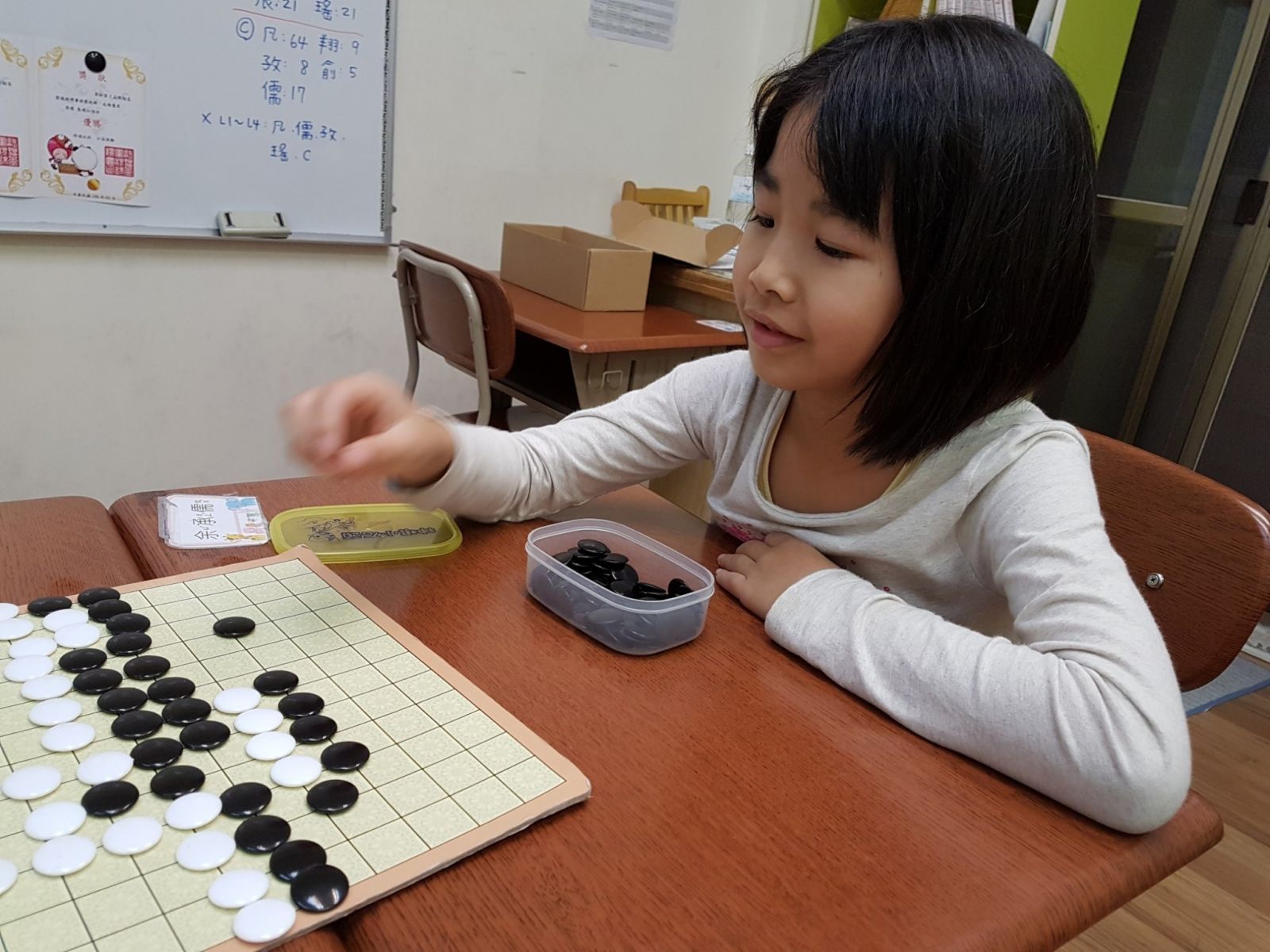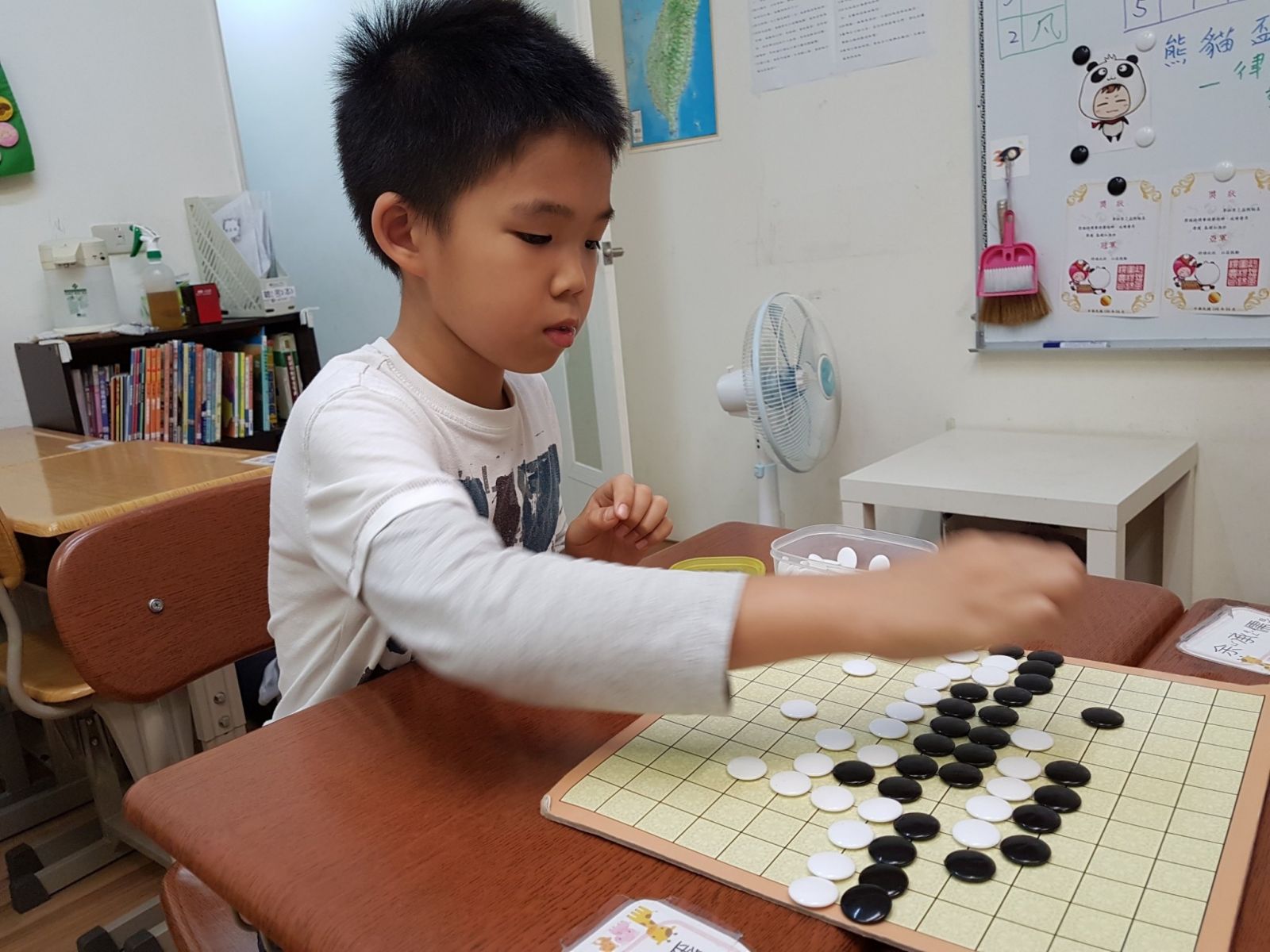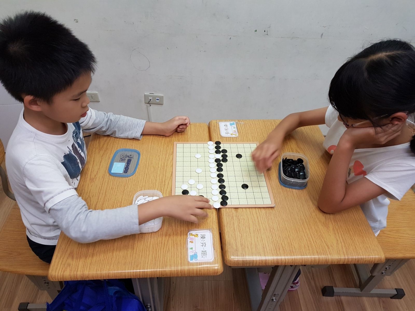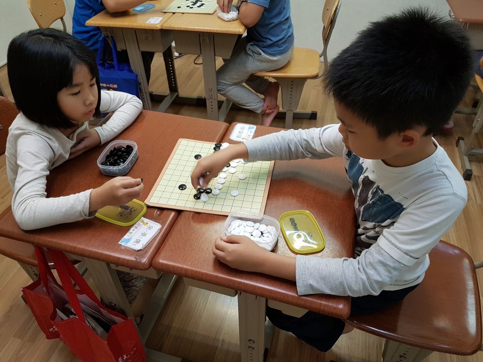 熊貓老師為了慶祝兒童節,專程為孩子辦理圍棋比賽,孩子們聽到有獎品,各個躍躍欲試,非常努力爭取。